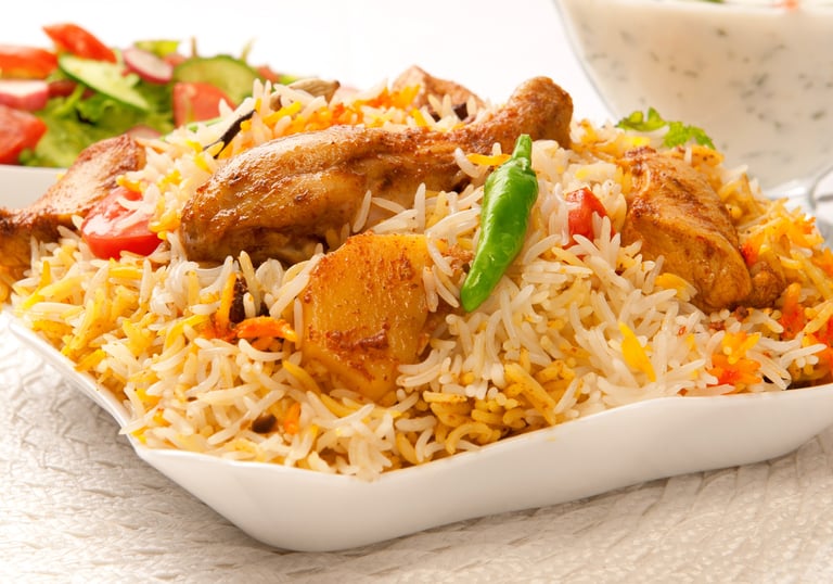 Aromatic biryanis layered with fragrant rice and tender meats or vegetables.